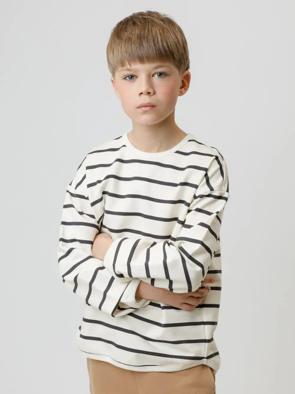 Свитшот для мальчика из мягкого петельчатого футера, произведённого из высококачественного натурального хлопка. Для удобства одевания имеется застёжка на кнопки. Изделие сохраняет цвет и форму после многократных стирок. Все трикотажные полотна производятся в соответствии с нормами швейцарского сертификата ЭкоТекс.