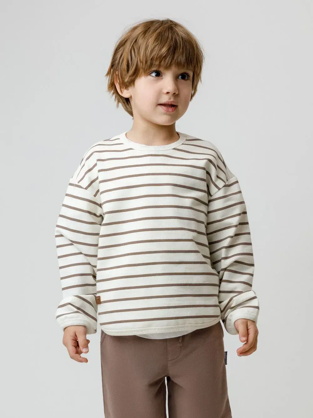 Лонгслив для мальчика из мягкого петельчатого трикотажа, произведённого из высококачественного натурального хлопка. Обтачка горловины и низ изделия обработаны эластичным полотном. Для удобства одевания имеется застёжка на кнопки в размерах 92 и 98. Изделие сохраняет цвет и форму после многократных стирок. Все трикотажные полотна производятся в соответствии с нормами швейцарского сертификата ЭкоТекс.