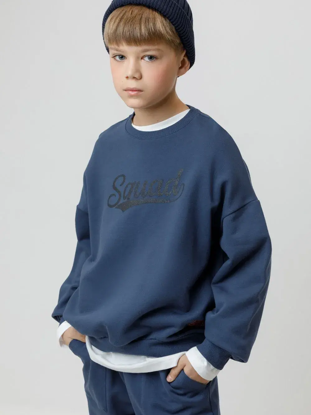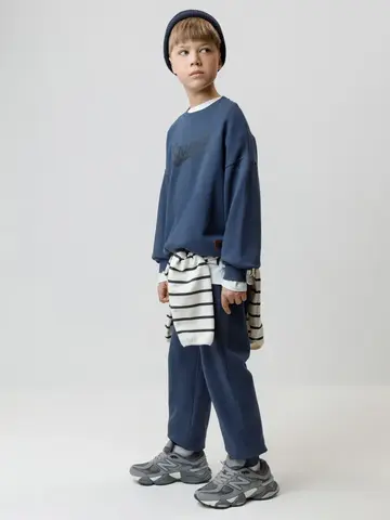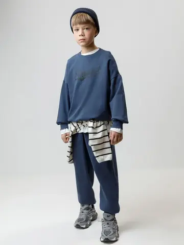 Свитшот для мальчика из высококачественного петельчатого футера. Обтачка горловины, манжеты и пояс выполнены из эластичного полотна. Оригинальный принт нанесён с помощью стойких текстильных гипоаллергенных красителей.