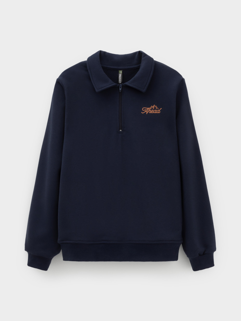 Свитшот с воротником для мальчика. Изготовлен из высококачественного петельчатого футера. В составе 80% натурального хлопка и 20% полиэстера, при этом полиэстер ввязан внутрь по особой технологии и не соприкасается с кожей. Манжеты и пояс выполнены из эластичного полотна. На груди короткая застёжка на молнию. Оригинальный принт выполнен из стойких текстильных гипоаллергенных красителей. Изделие сохраняет цвет и форму после многократных стирок.