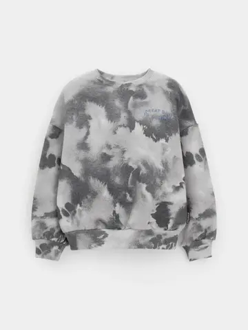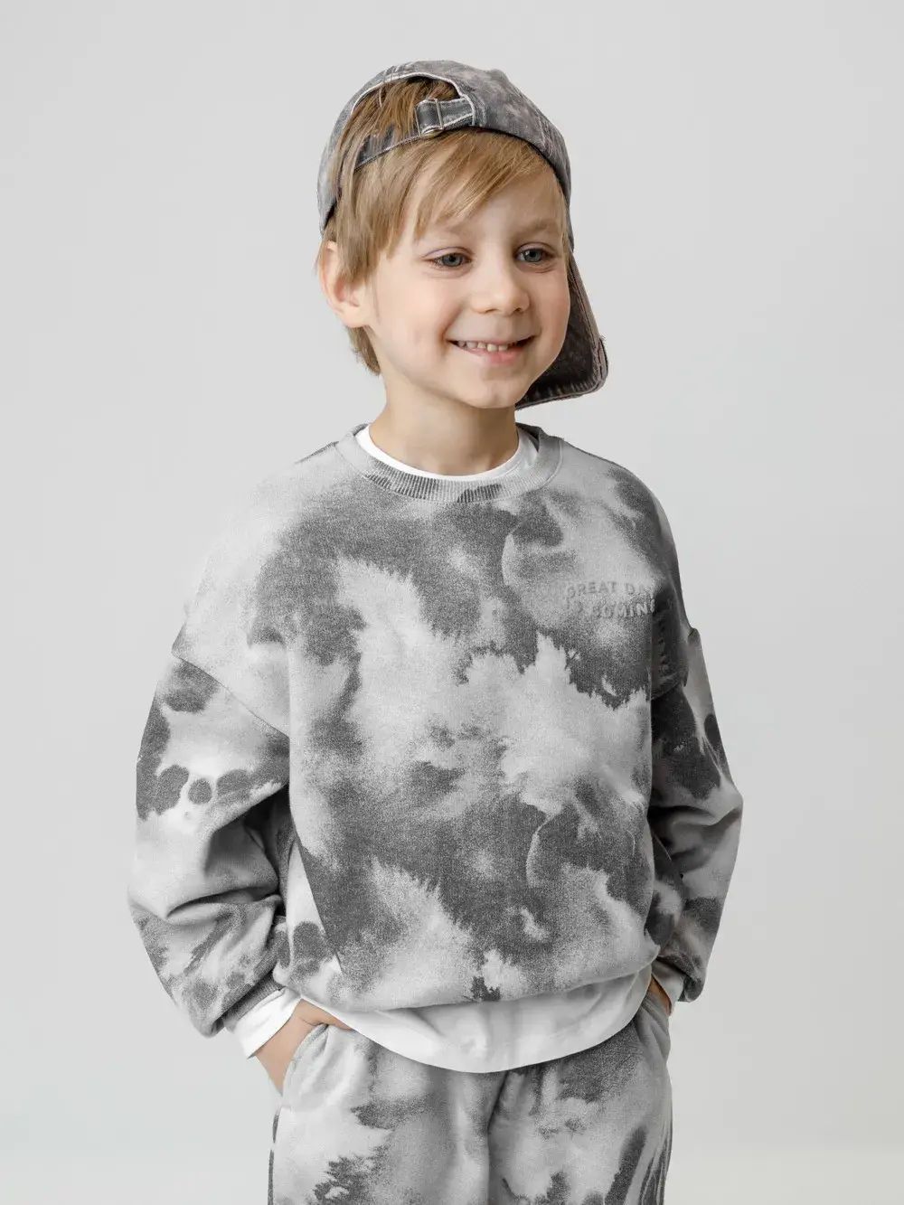 Свитшот для мальчика из высококачественного петельчатого футера. Обтачка горловины, манжеты и пояс выполнены из эластичного полотна. В размерах 92 и 98 на спинке имеется застёжка на кнопки. Оригинальный принт нанесён с помощью стойких текстильных гипоаллергенных красителей.