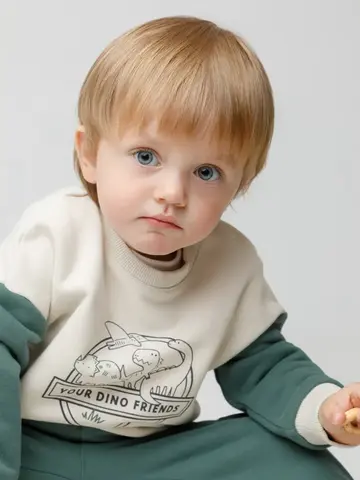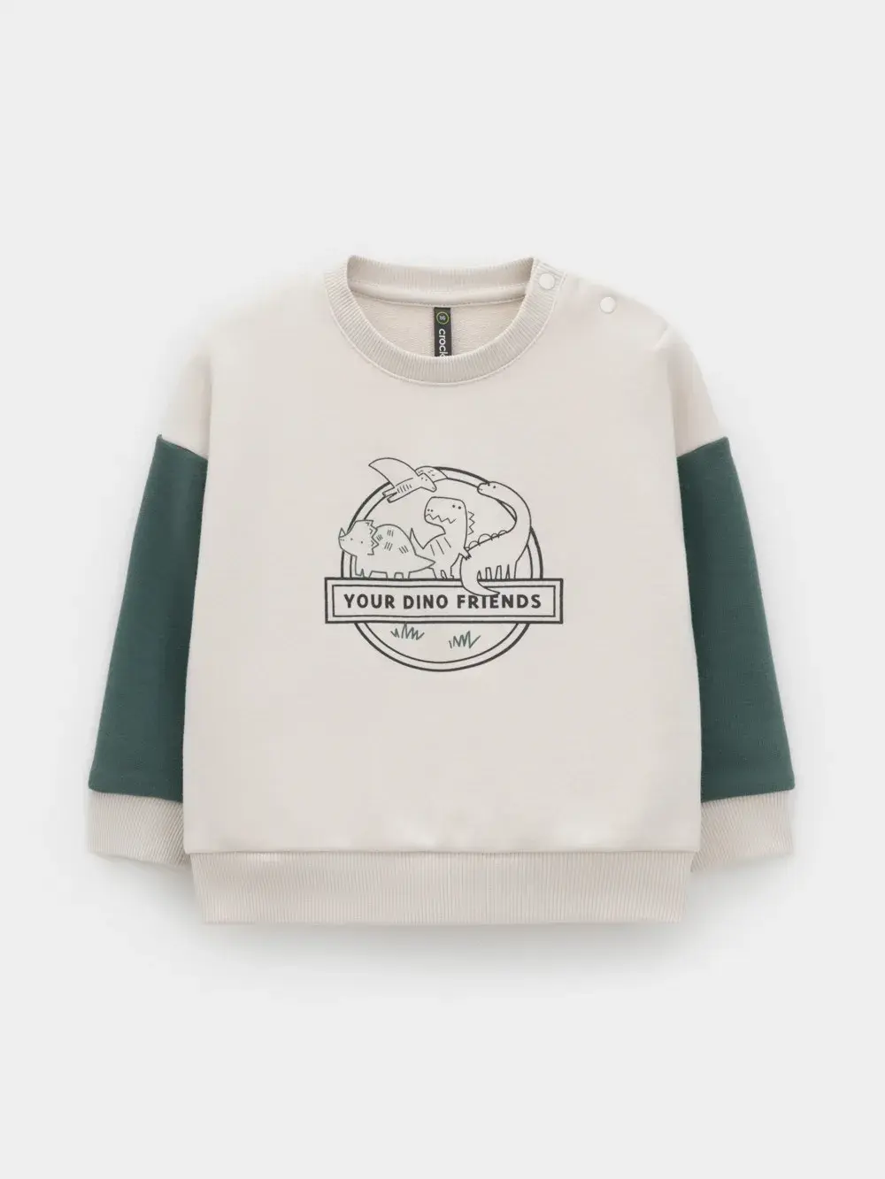 Свитшот для мальчика из высококачественного петельчатого футера. В составе 80% натурального хлопка и 20% полиэстера, при этом полиэстер ввязан внутрь по особой технологии и не соприкасается с кожей. Обтачка горловины, манжеты и пояс выполнены из эластичного полотна. Для удобства одевания имеется застёжка на кнопки. Оригинальный принт нанесён с помощью стойких текстильных гипоаллергенных красителей.