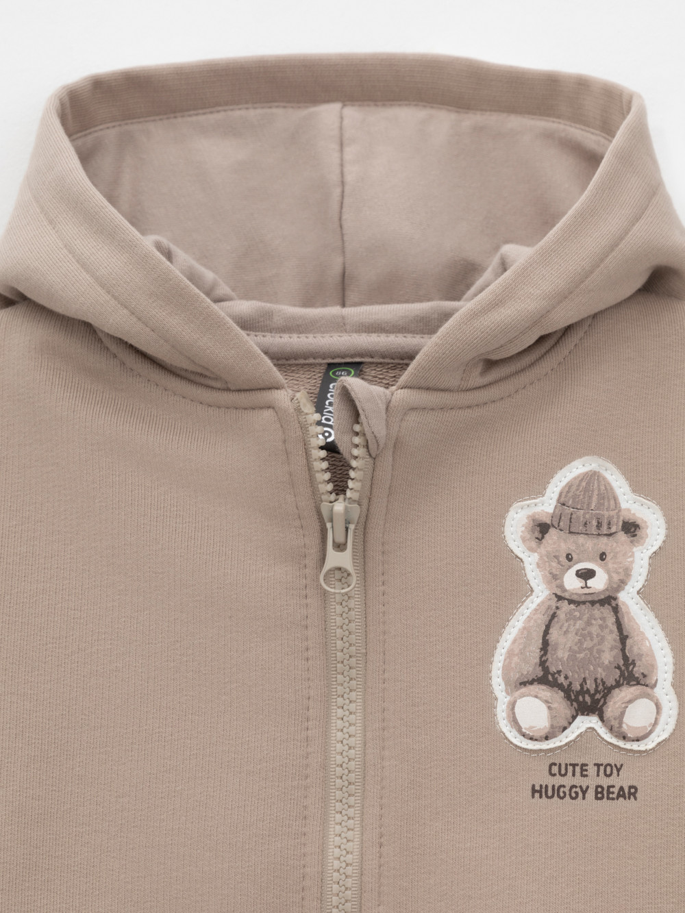Куртка для мальчика с капюшоном на молнии. Изготовлена из мягкого петельчатого футера трёхнитки. В составе 80% натурального хлопка и 20% полиэстера, при этом полиэстер ввязан внутрь по особой технологии и не соприкасается с кожей. Воротник, манжеты и пояс выполнены из эластичного полотна. По бокам два кармана. Изделие сохраняет цвет и форму после многократных стирок. Все трикотажные полотна производятся в соответствии с нормами швейцарского сертификата ЭкоТекс.