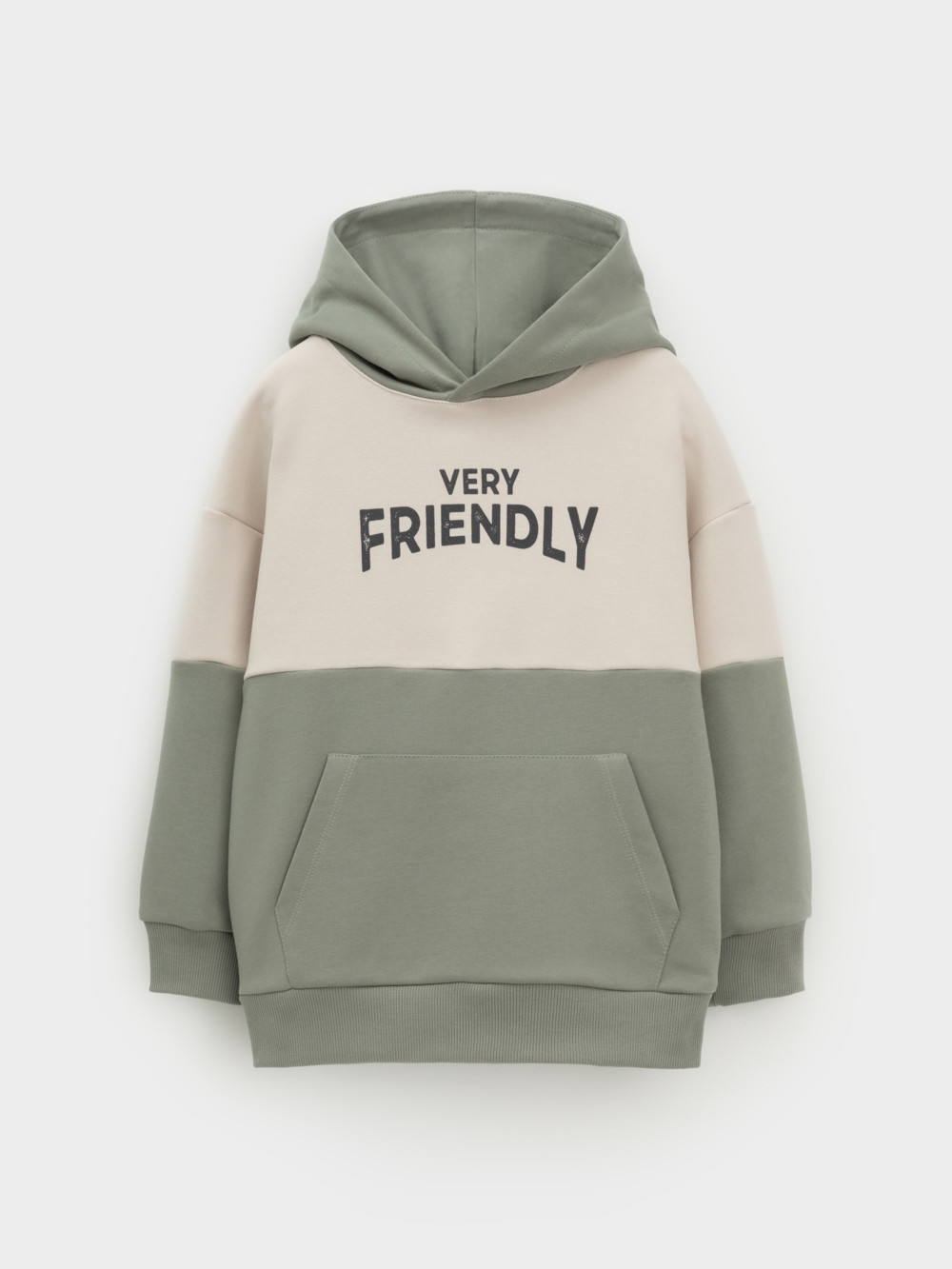 Худи с капюшоном для мальчика из мягкого петельчатого футера трёхнитки. В составе 80% натурального хлопка и 20% полиэстера, при этом полиэстер ввязан внутрь по особой технологии и не соприкасается с кожей. Пояс и манжеты выполнены из мягкого эластичного трикотажа. Спереди удобный и вместительный карман-кенгуру. Худи сохраняет форму и стойкий цвет после многочисленных стирок и идеально подходит на каждый день. Оригинальный принт выполнен из стойких текстильных гипоаллергенных красителей. Все трикотажные полотна производятся в соответствии с нормами швейцарского сертификата ЭкоТекс.