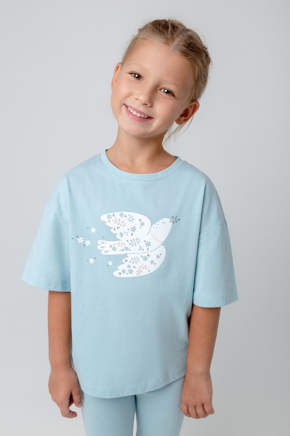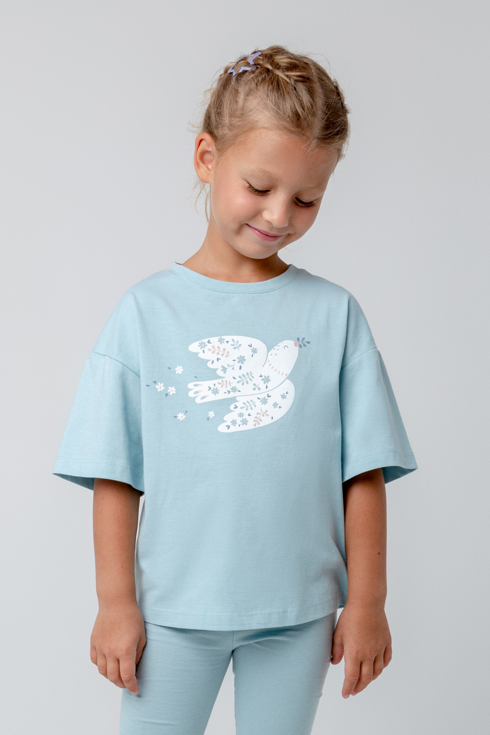 Футболка для девочки из высококачественного трикотажного полотна. Оригинальный принт выполнен из стойких текстильных гипоаллергенных красителей.