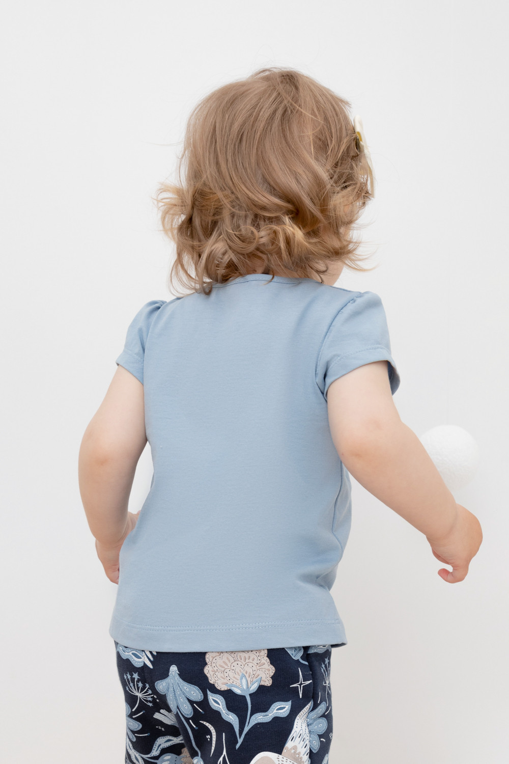 Футболка для девочки из высококачественного трикотажного полотна. Для удобства редусмотрена застежка на 2 кнопки. Оригинальный принт выполнен из стойких текстильных гипоаллергенных красителей.