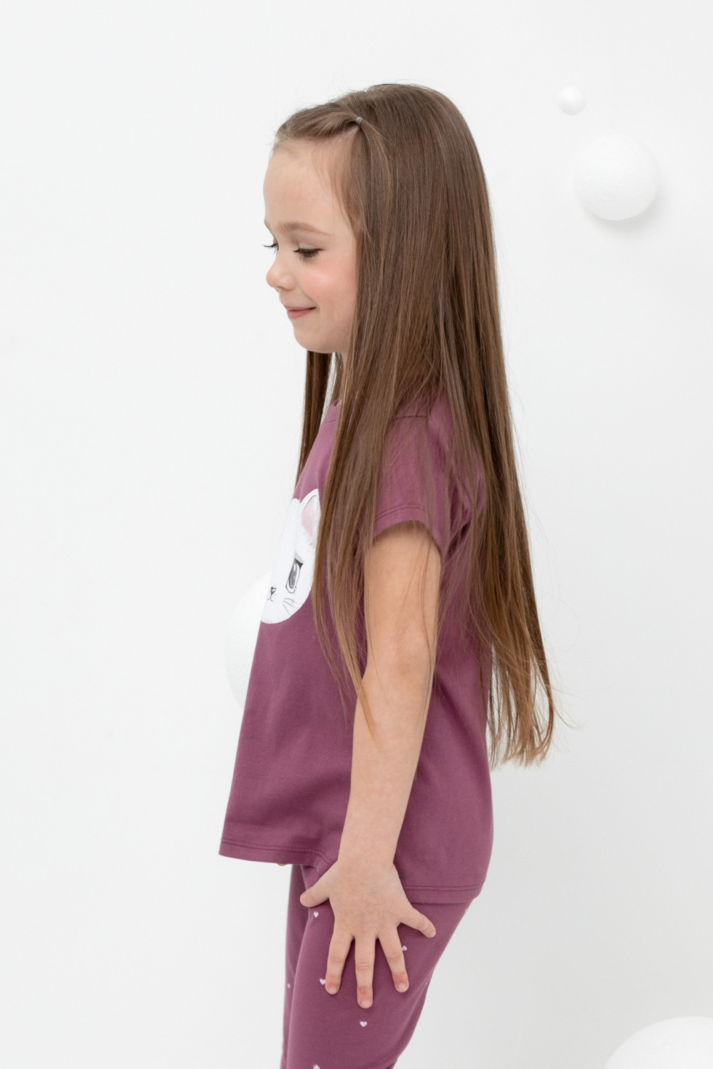 Футболка для девочки из высококачественного трикотажного полотна. Для удобства предусмотрена застежка на 2 кнопки в размерах 92 и 98. Оригинальный принт выполнен из стойких текстильных гипоаллергенных красителей.