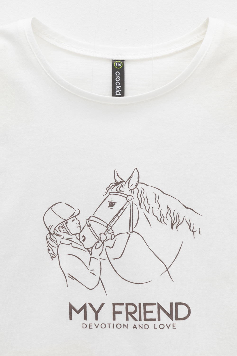 Футболка для девочки из высококачественного трикотажного полотна. Оригинальный принт выполнен из стойких текстильных гипоаллергенных красителей. Для удобства предусмотрена застежка на 2 кнопки в размерах 92 и 98.
