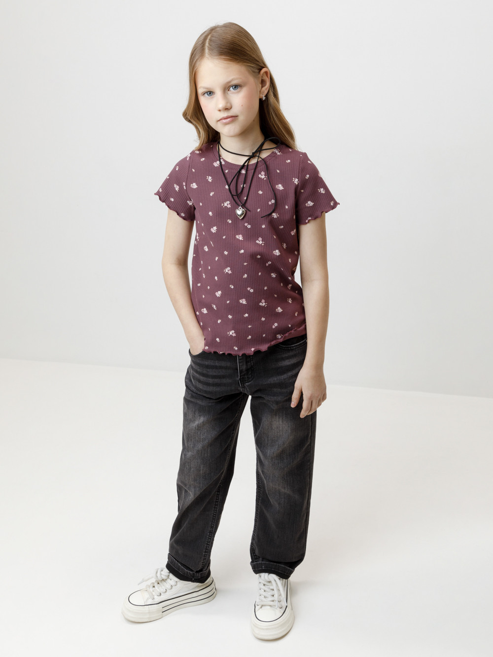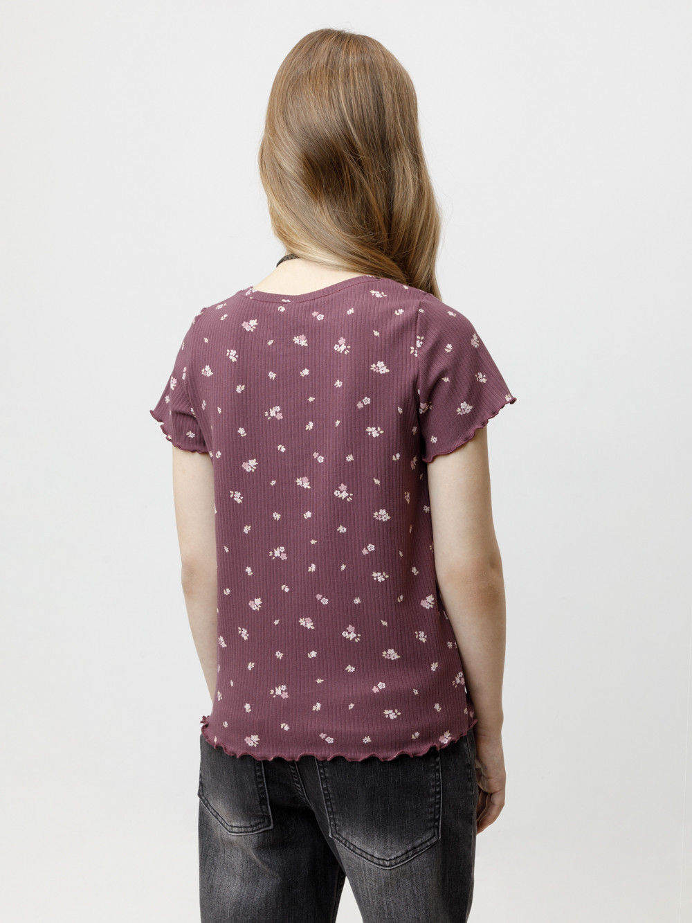 Футболка для девочки из эластичного трикотажа в рубчик. Оригинальный рисунок выполнен из стойких текстильных гипоаллергенных красителей. Изделие сохраняет цвет и форму после многократных стирок. Все трикотажные полотна производятся в соответствии с нормами швейцарского сертификата ЭкоТекс.