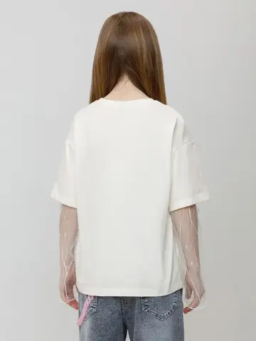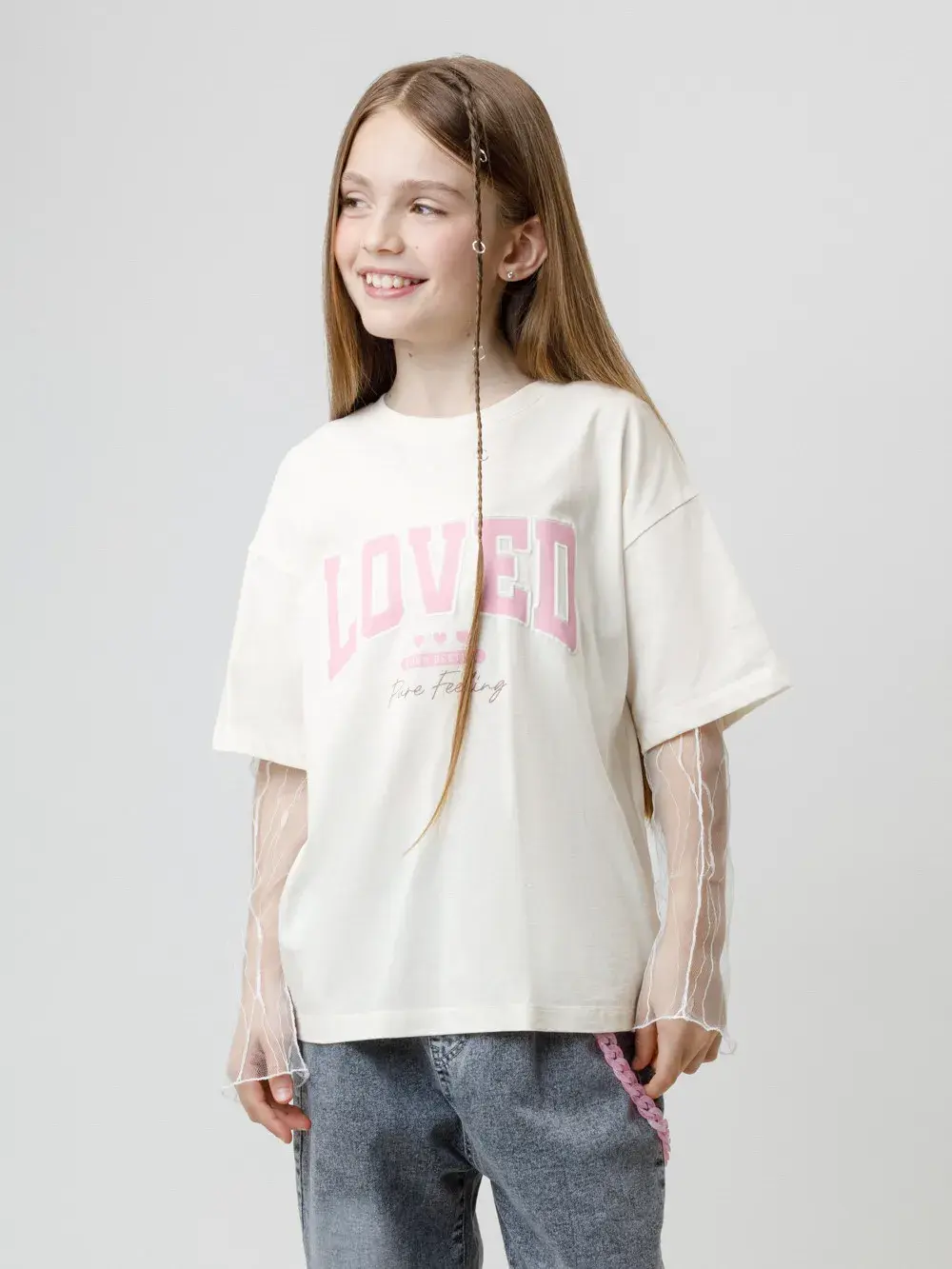 Футболка для девочки из гладкого трикотажа, произведённого из высококачественного натурального хлопка. Оригинальный принт выполнен из стойких текстильных гипоаллергенных красителей. Изделие сохраняет цвет и форму после многократных стирок. Все трикотажные полотна производятся в соответствии с нормами швейцарского сертификата ЭкоТекс.