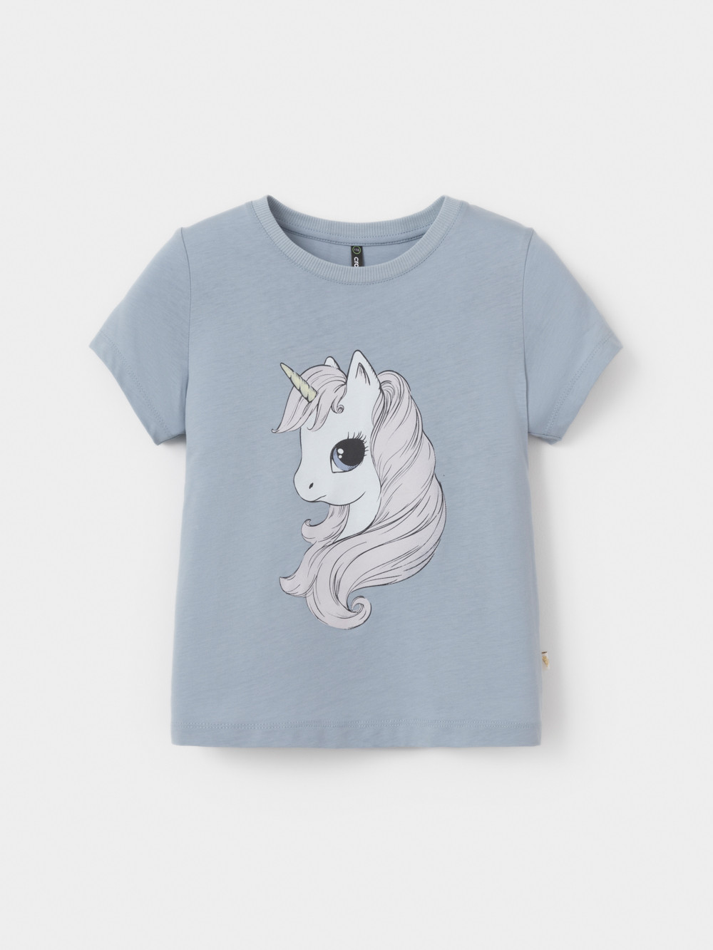Футболка для девочки из гладкого трикотажа, произведённого из высококачественного натурального хлопка. Застёгивается на плече на кнопки в размерах 92 и 98. Оригинальный принт выполнен из стойких текстильных гипоаллергенных красителей. Изделие сохраняет цвет и форму после многократных стирок. Все трикотажные полотна производятся в соответствии с нормами швейцарского сертификата ЭкоТекс.
