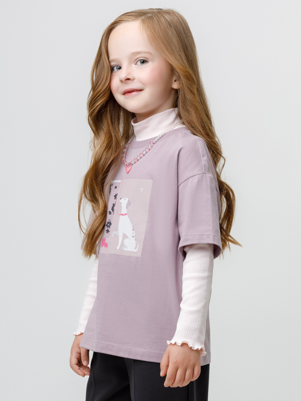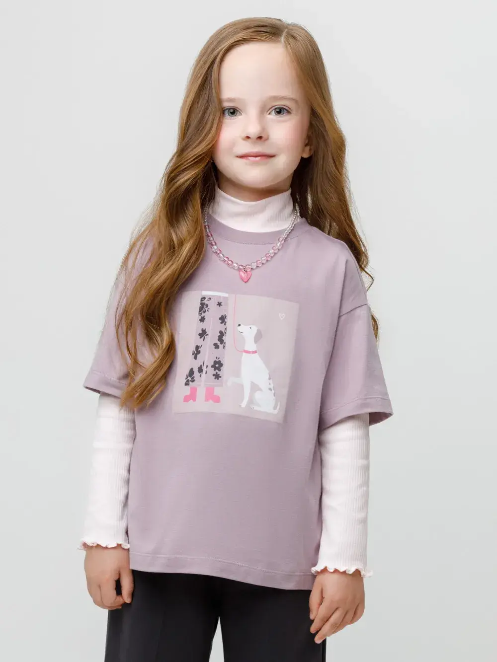 Футболка для девочки из гладкого трикотажа, произведённого из высококачественного натурального хлопка. В размерах 92 и 98 на спине застёгивается на кнопки. Оригинальный принт выполнен из стойких текстильных гипоаллергенных красителей. Изделие сохраняет цвет и форму после многократных стирок. Все трикотажные полотна производятся в соответствии с нормами швейцарского сертификата ЭкоТекс.