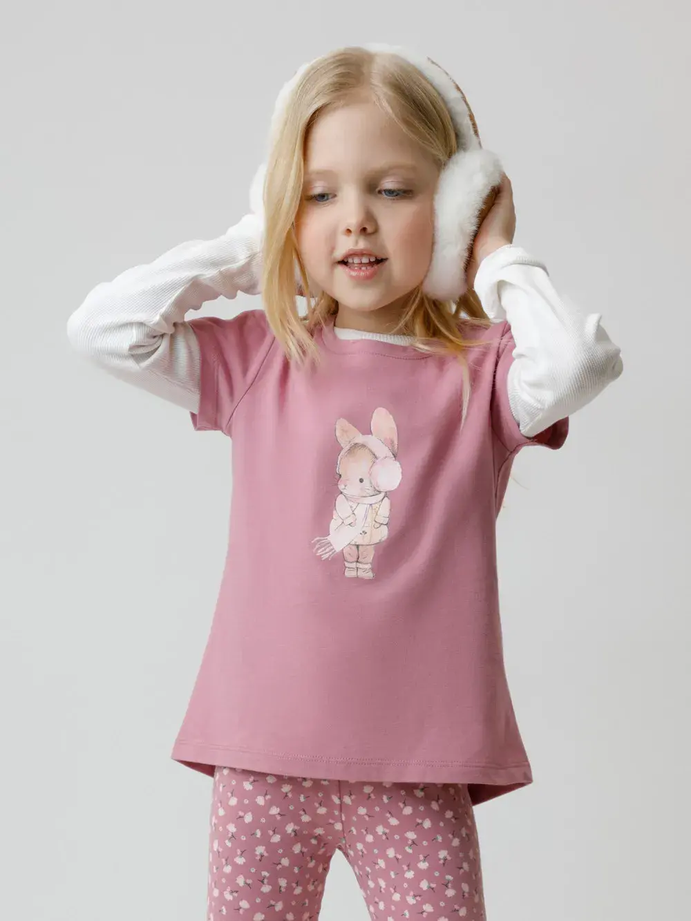 Футболка удлинённая для девочки из гладкого трикотажа, произведённого из высококачественного натурального хлопка. В 92 и 98 размерах для удобства при одевании застёгивается на кнопки. Оригинальный принт выполнен из стойких текстильных гипоаллергенных красителей. Изделие сохраняет цвет и форму после многократных стирок. Все трикотажные полотна производятся в соответствии с нормами швейцарского сертификата ЭкоТекс.