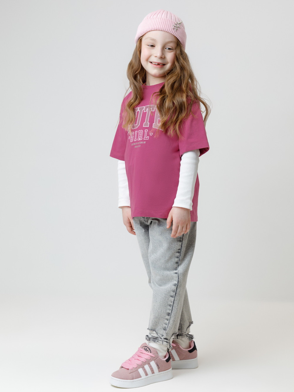 Футболка для девочки из гладкого трикотажа, произведённого из высококачественного натурального хлопка. В 92 и 98 размерах на спине для удобства при одевании застёгивается на кнопки. Оригинальный принт выполнен из стойких текстильных гипоаллергенных красителей. Изделие сохраняет цвет и форму после многократных стирок. Все трикотажные полотна производятся в соответствии с нормами швейцарского сертификата ЭкоТекс.