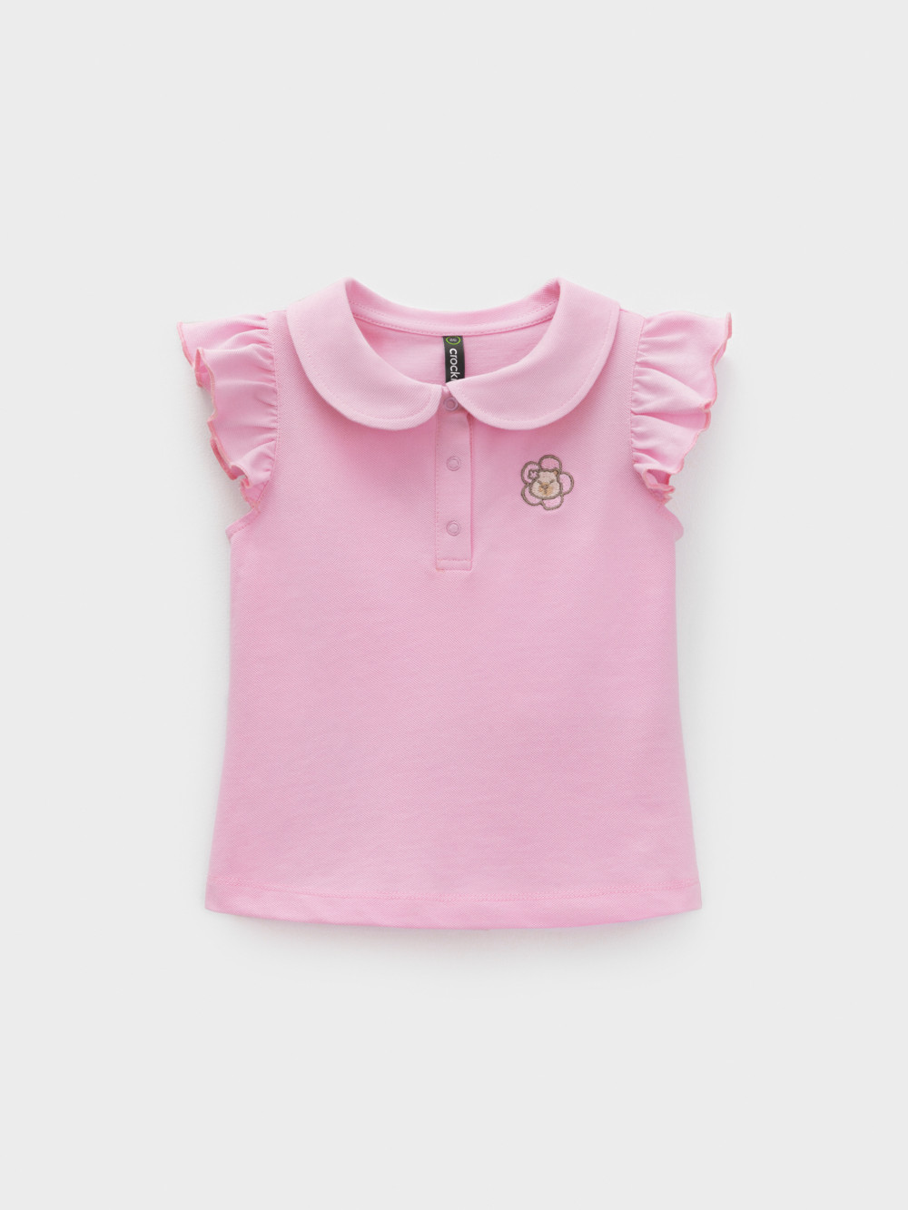 Футболка-поло для девочки из высококачественного трикотажа пике с воротничком и крылышками. Застёгивается на кнопки спереди. Изделие сохраняет цвет и форму после многократных стирок. Все трикотажные полотна производятся в соответствии с нормами швейцарского сертификата ЭкоТекс.