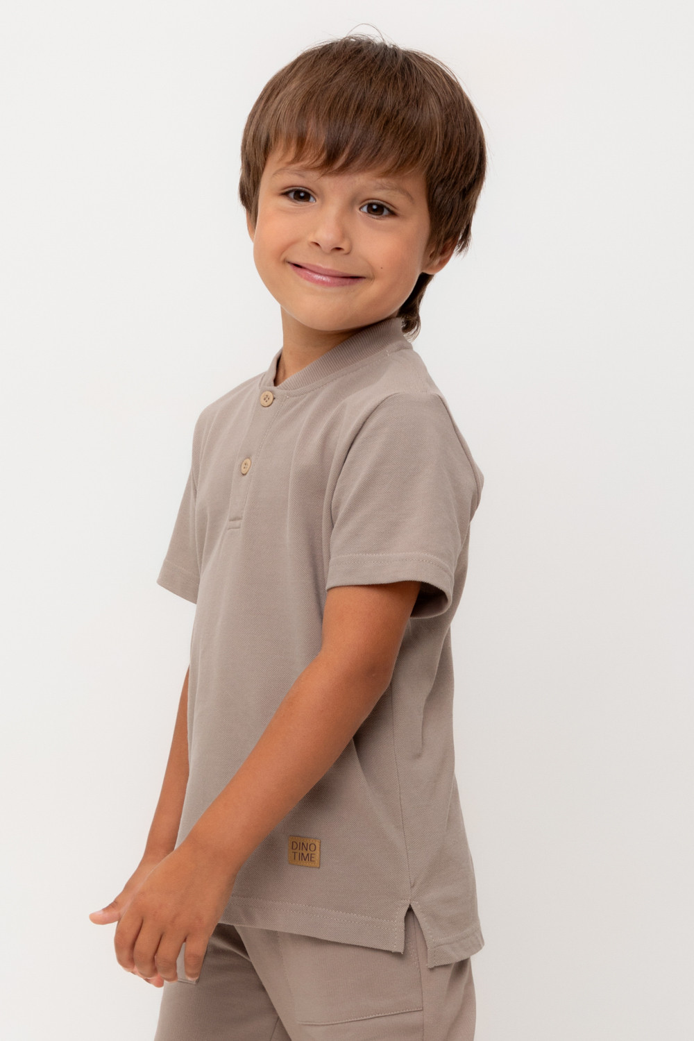 Поло для мальчика. Изготовлено из высококачественного трикотажного полотна пике. У изделия вязаный воротник и застежка спереди на две пуговицы.