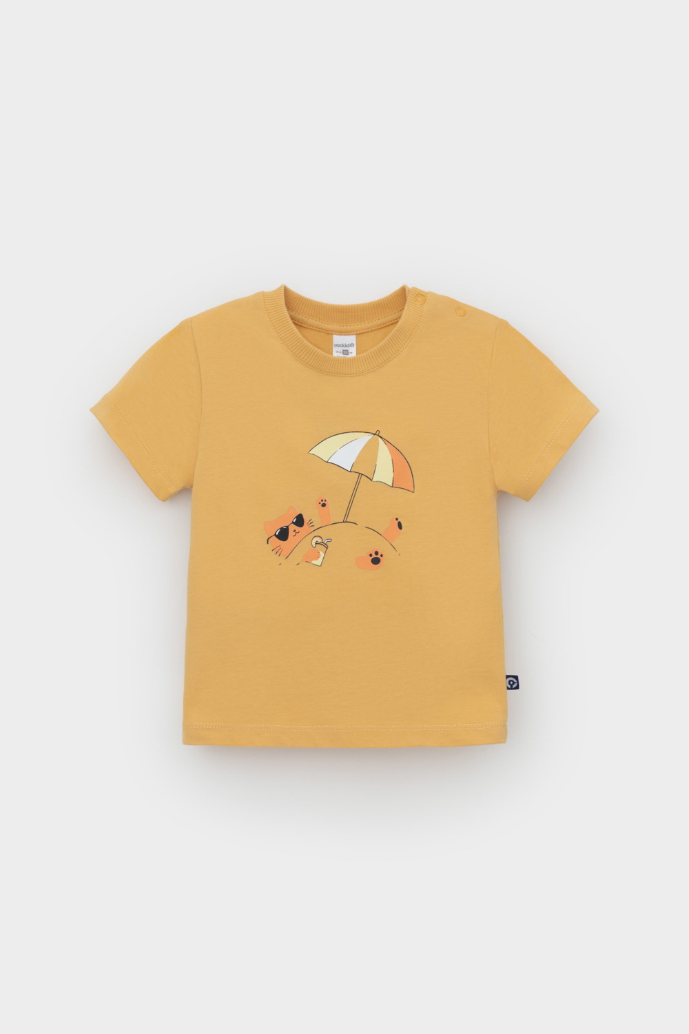 Футболка для мальчика из высококачественного трикотажного полотна. Оригинальный принт выполнен из стойких текстильных гипоаллергенных красителей. Для удобства на плече застежка на кнопки.