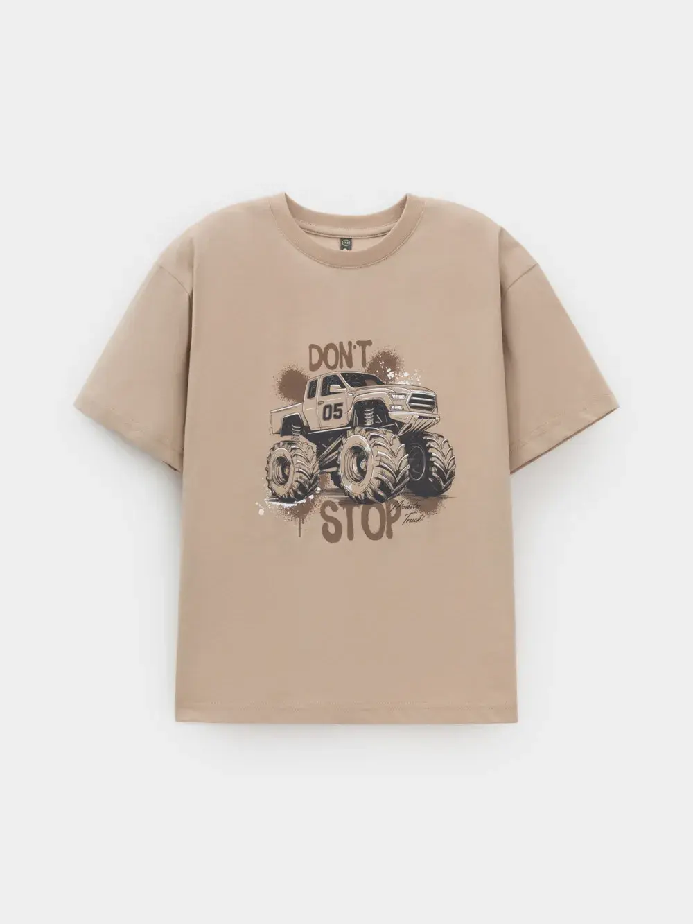 Футболка для мальчика из гладкого трикотажа, произведённого из высококачественного натурального хлопка. Для удобства одевания имеется застёжка на кнопки в размерах 92 и 98. Оригинальный принт выполнен из стойких текстильных гипоаллергенных красителей. Изделие сохраняет цвет и форму после многократных стирок. Все трикотажные полотна производятся в соответствии с нормами швейцарского сертификата ЭкоТекс.