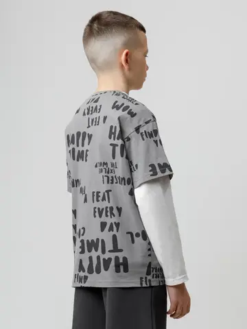 Футболка для мальчика из гладкого трикотажа, произведённого из высококачественного натурального хлопка. Оригинальный рисунок выполнен из стойких текстильных гипоаллергенных красителей. Изделие сохраняет цвет и форму после многократных стирок. Все трикотажные полотна производятся в соответствии с нормами швейцарского сертификата ЭкоТекс.