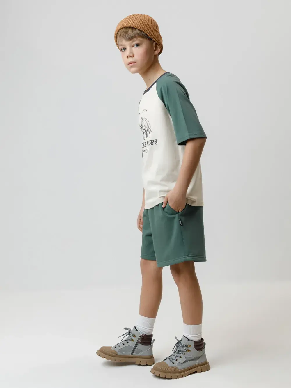 Футболка для мальчика из гладкого трикотажа, произведённого из высококачественного натурального хлопка. Оригинальный принт выполнен из стойких текстильных гипоаллергенных красителей. Изделие сохраняет цвет и форму после многократных стирок. Все трикотажные полотна производятся в соответствии с нормами швейцарского сертификата ЭкоТекс.