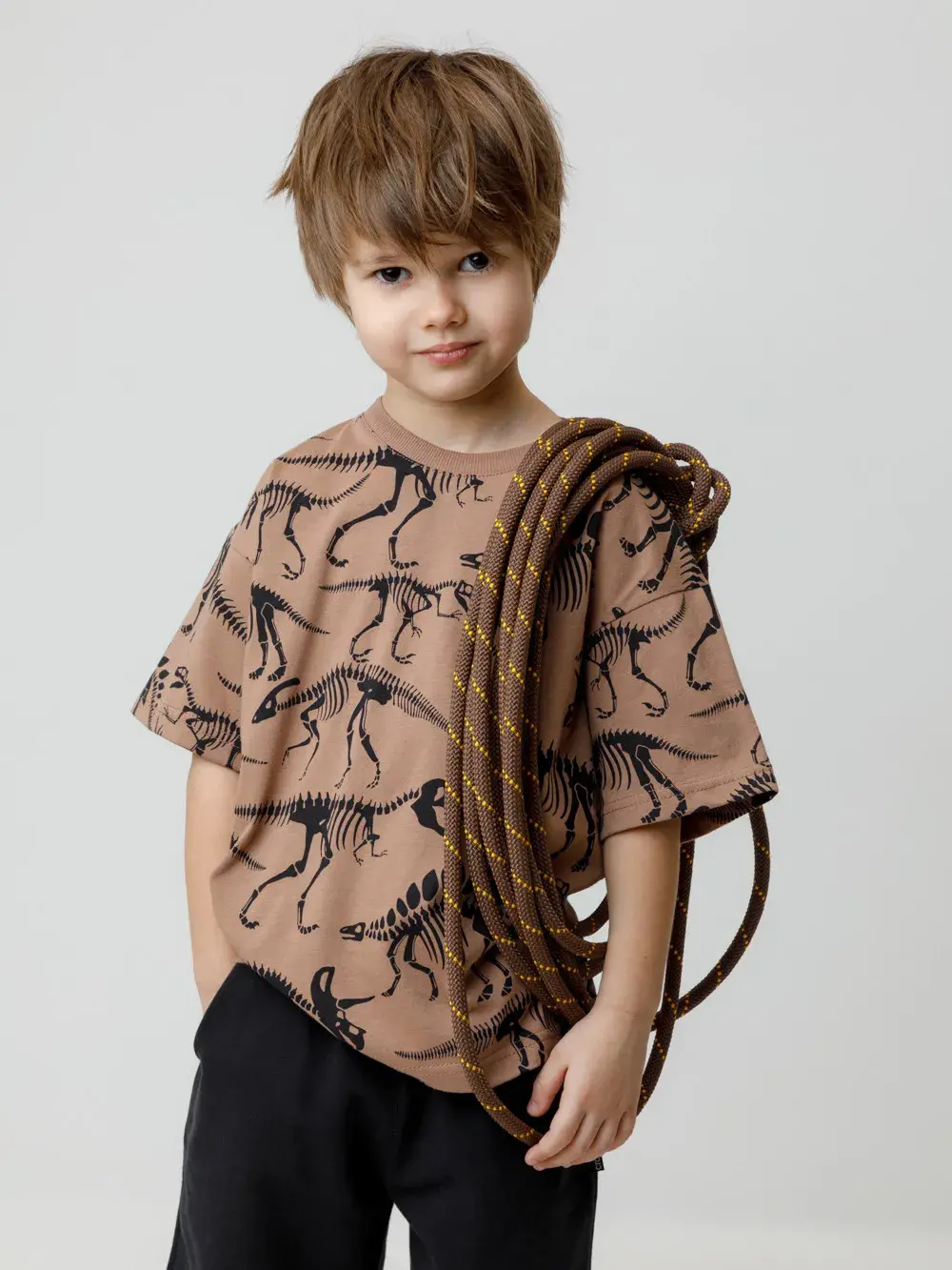 Футболка для мальчика из гладкого трикотажа, произведённого из высококачественного натурального хлопка. Для удобства одевания имеется застёжка на кнопки в размерах 92 и 98. Оригинальный рисунок выполнен из стойких текстильных гипоаллергенных красителей. Изделие сохраняет цвет и форму после многократных стирок. Все трикотажные полотна производятся в соответствии с нормами швейцарского сертификата ЭкоТекс.