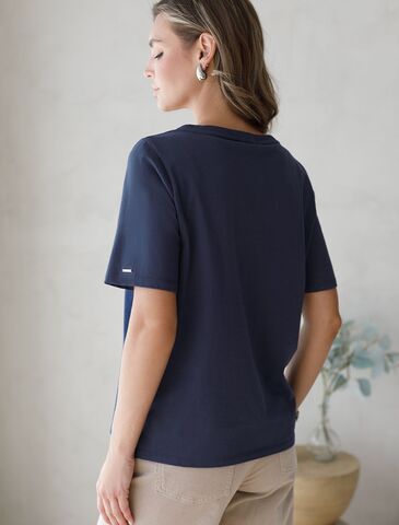 Базовая модель свободного кроя c V-вырезом легко впишется в повседненвый гардероб. Изделие хорошо держит форму и обеспечивает комфортный микроклимат в течение дня.