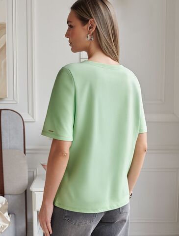 Базовая модель свободного кроя c V-вырезом легко впишется в повседненвый гардероб. Изделие хорошо держит форму и обеспечивает комфортный микроклимат в течение дня.