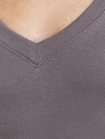 Облегающая футболка с V-образным вырезом глубокого кофейного оттенка создаст утонченный образ. Идеальная базовая модель для вашего гардероба! Глубокий V-образный вырез подчеркивает линию шеи и зрительно удлиняет силуэт. Футболка выполнена из хлопка с добавлением эластана, которая мягко облегает контуры тела, подчеркивая достоинства фигуры. Универсальный вариант для создания стильных повседневных образов.