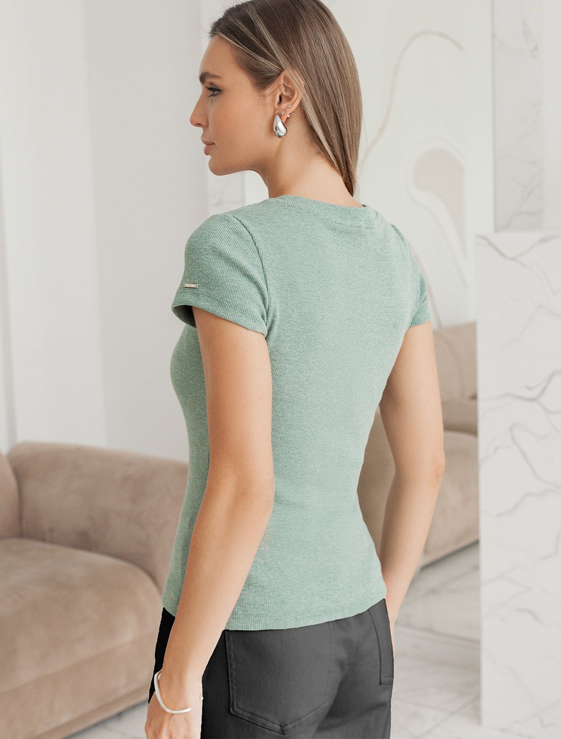 Футболка из плотного трикотажа в рубчик с V-образным вырезом D49.129 (130318)
