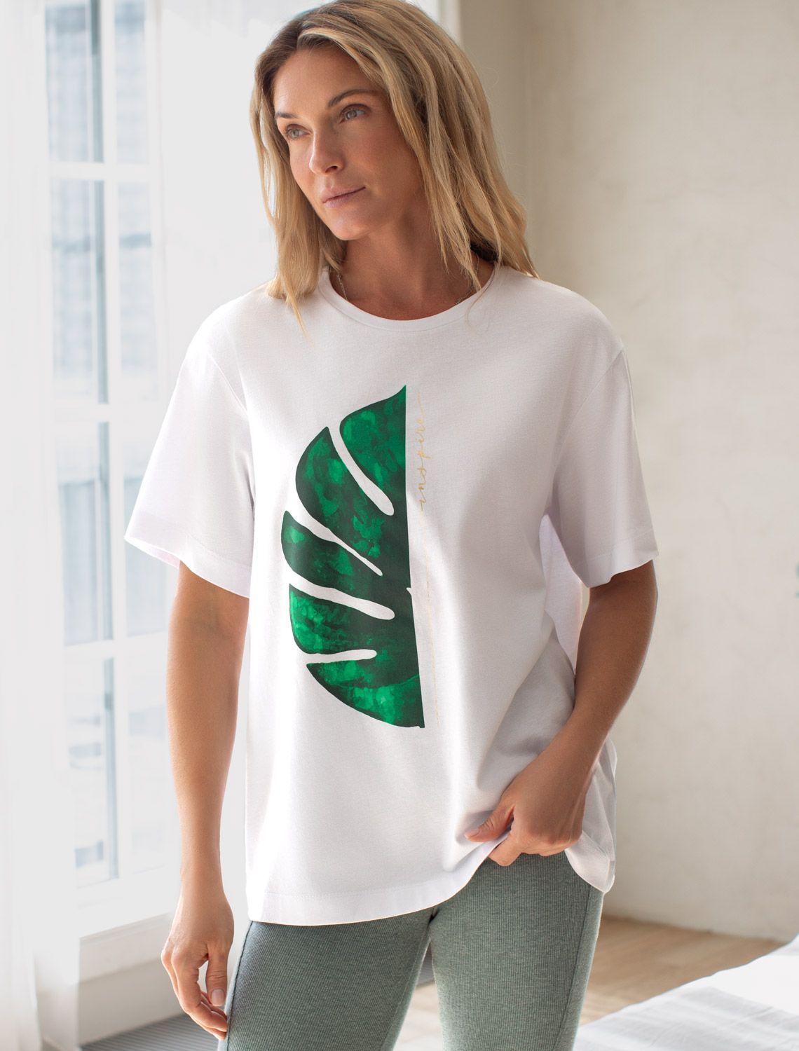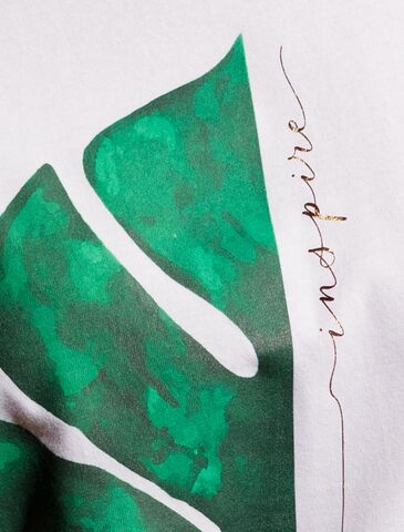 Перевод принта: Inspire - вдохновляй. Футболка прямого кроя выполнена из 100% хлопка. Базовая модель с лаконичным авторским принтом легко впишется в повседневный гардероб. Хорошо держит форму и обеспечивает комфортный микроклимат в течение дня.