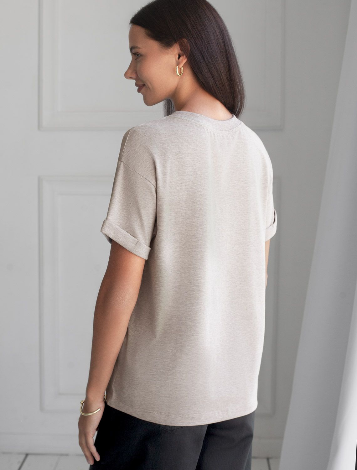 Футболка из премиального хлопка, высокое качество хлопковых волокон обеспечивает комфорт в любое время года. Горловина выполнена из рибаны в тон изделия, Рукава с подворотами и золотистым логотипом бренда. Авторский принт нанесен фактурными красками с устойчивым покрытием. За счет эластана в составе идеально держит форму и сохраняет внешний вид в течение долговременного использования. Универсальная вещь для ваших стилистических решений.
