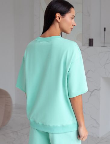 Перевод принта: Craft your dreams, art studio - стань скульптором своей мечты. Футболка свободного кроя со спущенным плечом выполнена из футера двухнитки с эластаном. Лаконичный принт нанесен фактурной краской. Эластичный материал гарантирует комфорт и формоустойчивость. Сочетается в костюме с брюками D44.138, D44.139 и шортами D48.008. Изделие дополнено металлическим логотипом бренда.