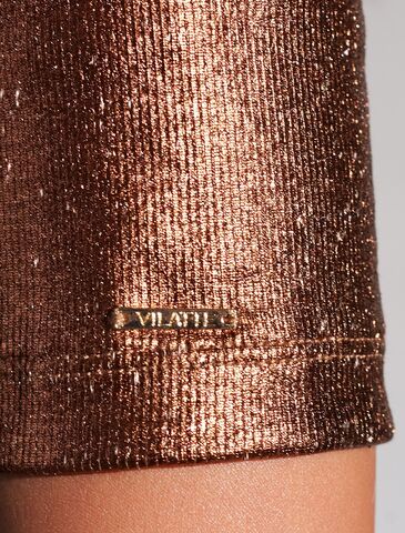 Стильная футболка кофейного цвета с U вырезом выполнена из премиального хлопка с добавлением эластана. Эффектное матовое бронзовое покрытие металлик с серебристыми вкраплениями придает футболке изысканный блеск. Чуть удлиненные рукава и глубокий круглый вырез, открывающий область декольте, добавляют женственность и элегантность образу. Мелкий рубчик визуально вытягивает силуэт, за счет эластана в составе материал прекрасно тянется и садится на любую фигуру, в том числе большие размеры. Ткань износостойкая, сохраняет свой превоначальный вид даже после многочисленных стирок, отличается мягкостью и приятными тактильными ощущениями, такой материал не раздражает кожу, дарит ощущение уюта даже при длительном ношении, а воздухопроницаемость позволяет коже свободно дышать.