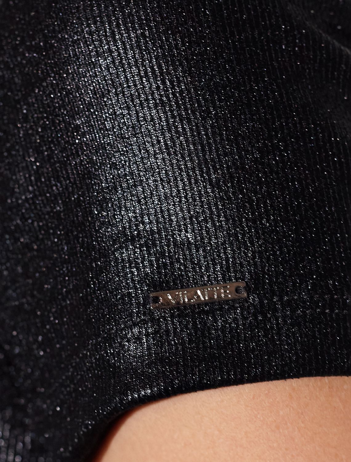 Стильная футболка черного цвета с V вырезом выполнена из премиального хлопка с добавлением эластана. Эффектное матовое покрытие металлик придает футболке изысканный блеск. Чуть удлиненные рукава и глубокий вырез, открывающий область декольте, добавляют женственность и элегантность образу. Мелкий рубчик визуально вытягивает силуэт, за счет эластана в составе материал прекрасно тянется и садится на любую фигуру, в том числе большие размеры. Ткань износостойкая, сохраняет свой превоначальный вид даже после многочисленных стирок, отличается мягкостью и приятными тактильными ощущениями, такой материал не раздражает кожу, дарит ощущение уюта даже при длительном ношении, а воздухопроницаемость позволяет коже свободно дышать.