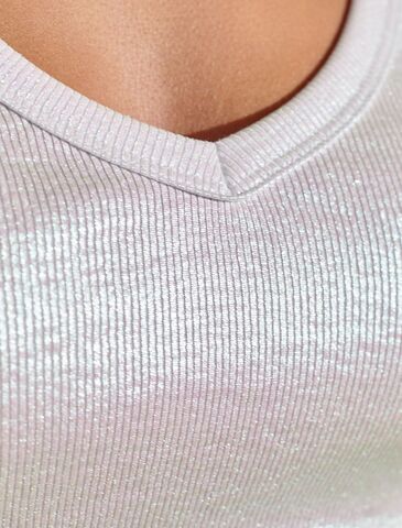 Футболка облегающая из хлопка в рубчик с V вырезом и матовым покрытием металлик D49.121 (129431)
