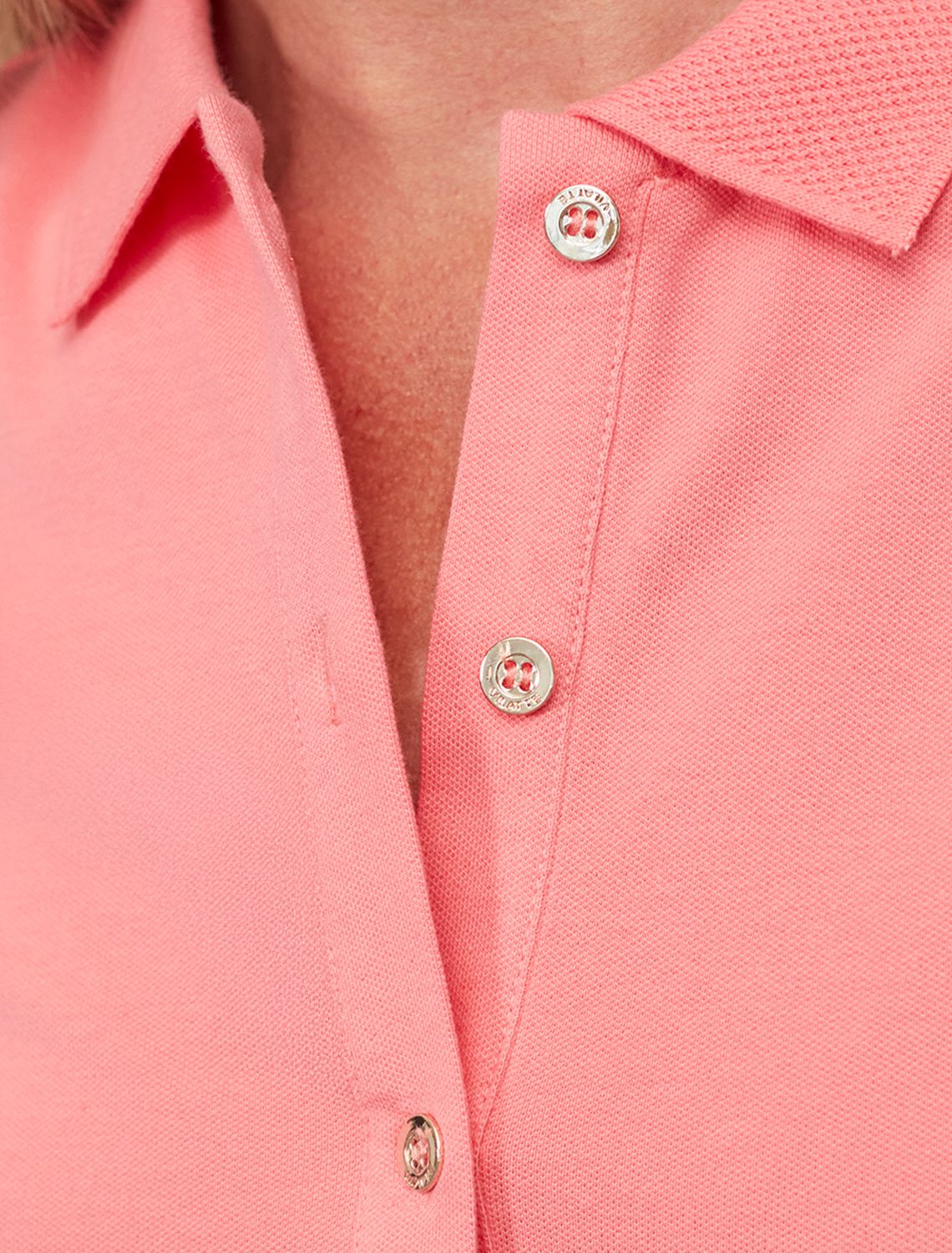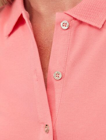 Футболка-поло полуприлегающего силуэта. Классическая модель из хлопка с эластаном с отложным вязаным воротником. Идеально впишется в повседневный гардероб. Застежка на пуговицы на планке.