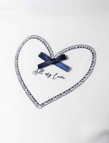 Особое внимание привлекает стильный принт в виде сердца с минималистичной надписью, перевод надписи All my love - вся моя любовь. Принт выполненны красками с устойчивым покрытием, который добавляет изделию оригинальности и позволяет выразить индивидуальность.