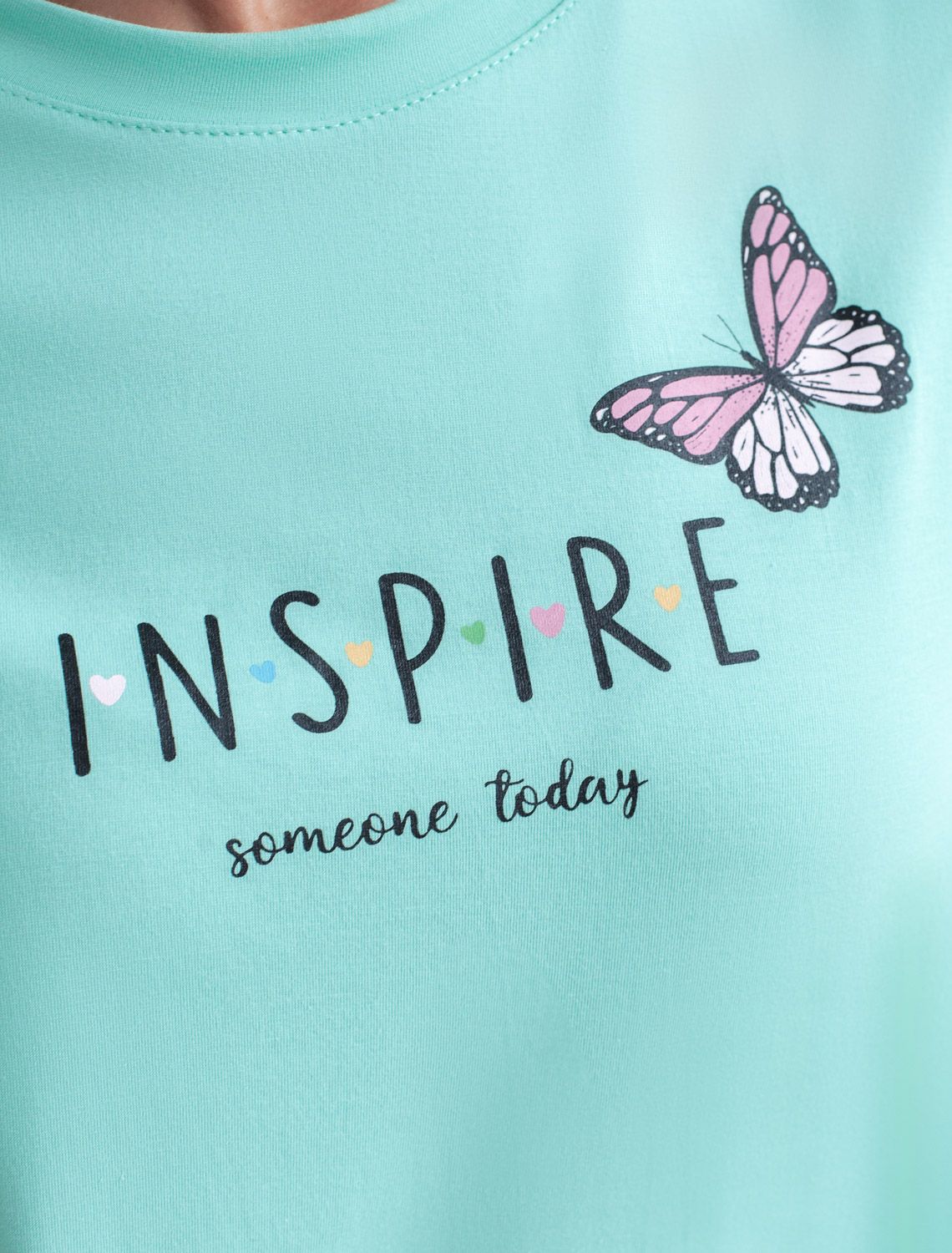 Особое внимание привлекает стильный принт в виде бабочки с минималистичной надписью, перевод надписи Inspire Someone Today - Вдохновите кого-нибудь сегодня . Принт выполненны красками с устойчивым покрытием, который добавляет изделию оригинальности и позволяет выразить индивидуальность.