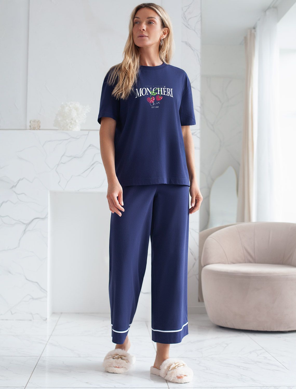 Особое внимание привлекает стильный принт в виде ягод вишни с минималистичной надписью. Перевод надписи: Always and Forever Moncheri - Всегда и Навсегда Мончери. Принт выполнен красками с устойчивым покрытием, который добавляет изделию оригинальности и позволяет выразить индивидуальность.