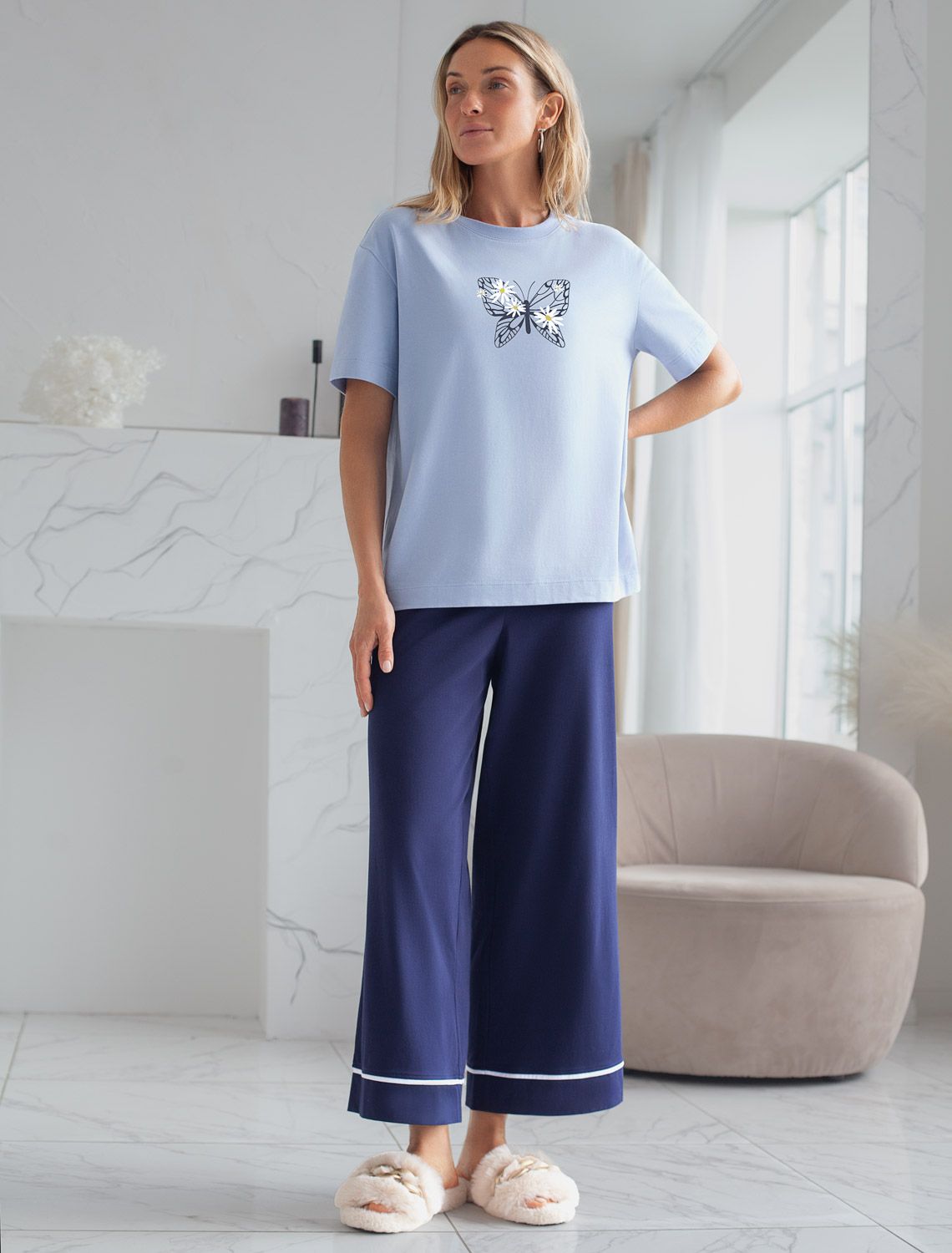 Особое внимание привлекает стильный принт в виде бабочки с цветами. Принт выполнен красками с устойчивым покрытием, который добавляет изделию оригинальности и позволяет выразить индивидуальность.