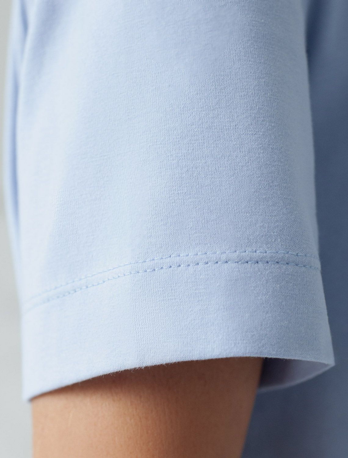 Футболка нежного голубого цвета изготовлена из премиального хлопка с эластаном, она обеспечивает невероятное ощущение уюта и легкости. Натуральный материал сохраняет форму и цвет после множества стирок, обеспечивая долговечность изделия, а его высокая воздухопроницаемость создает ощущение свежести даже в течение долгого дня.