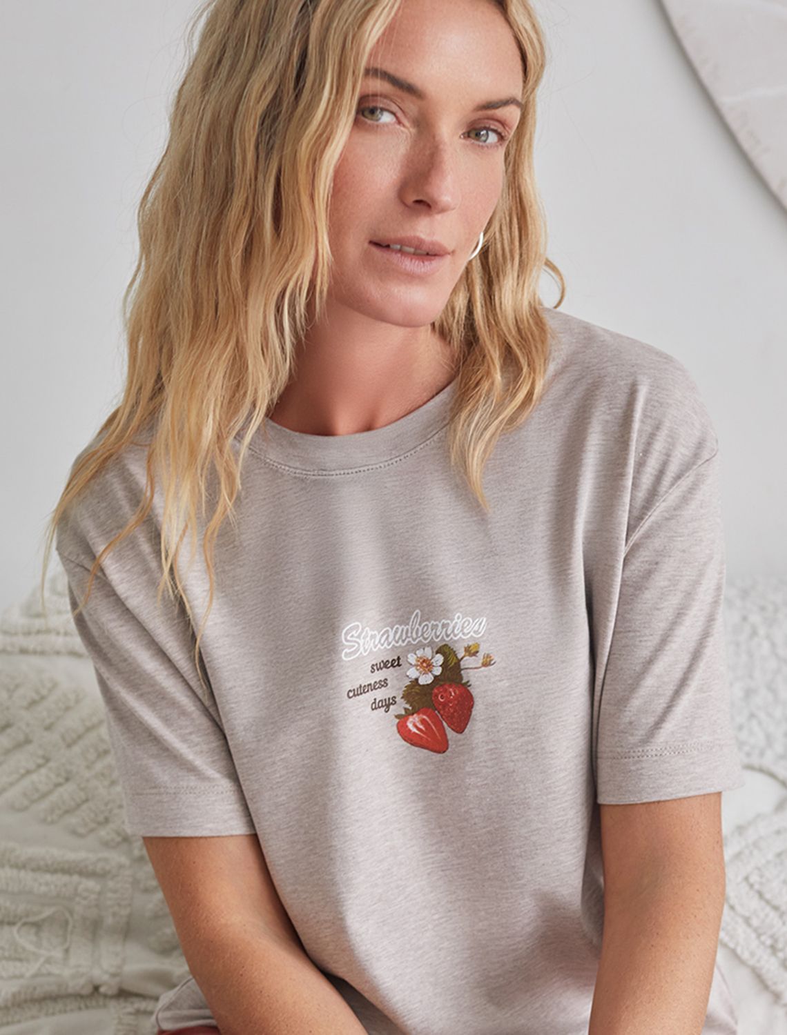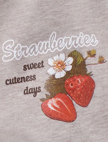 Особое внимание привлекает стильный принт в виде клубники с минималистичной надписью. Перевод надписи: Strawberries sweet summer days - Клубничные сладкие летние дни. Принт выполненны красками с устойчивым покрытием, который добавляет изделию оригинальности и позволяет выразить индивидуальность.
