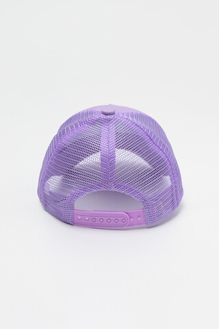 Кепка для девочки из текстиля и сетки. Спереди оригинальная нашивка. Регулируется по ширине и фиксируется на затылке с помощью пластиковой застежки.
