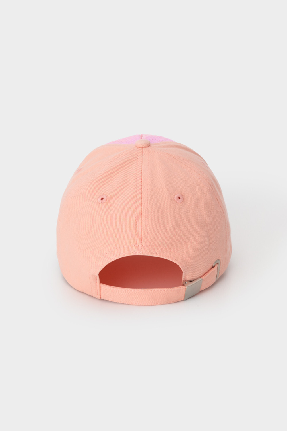 Кепка для девочки из натурального хлопка. Спереди украшена пайетками. Регулируется по ширине головы и фиксируется на затылке с помощью металлического зажима.