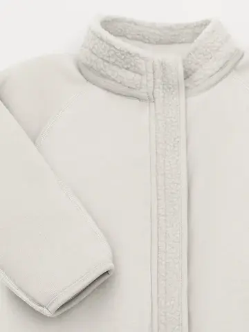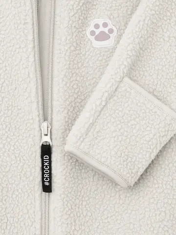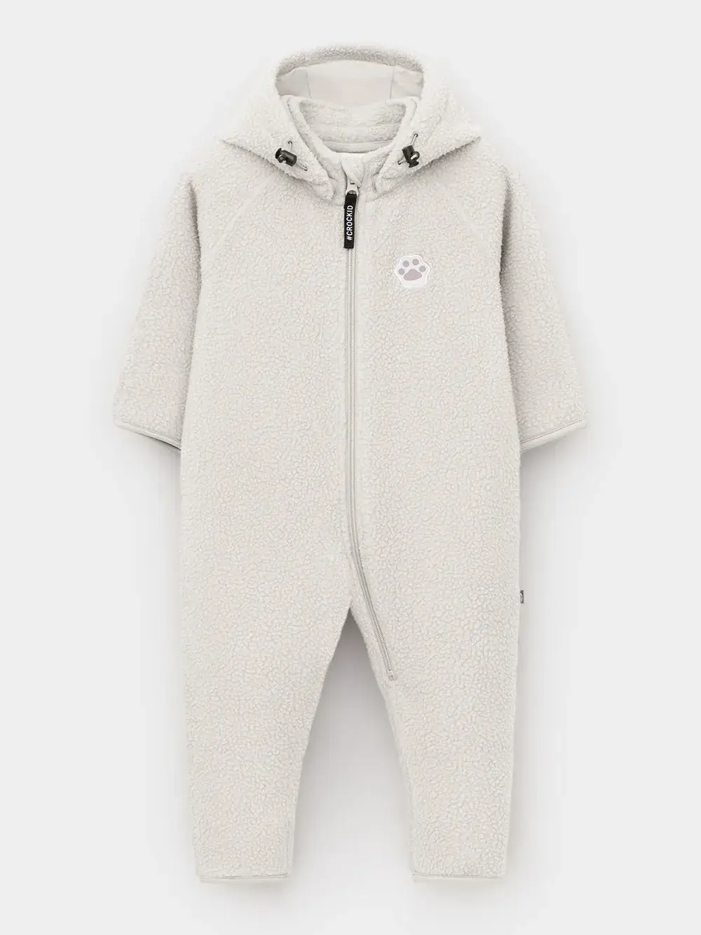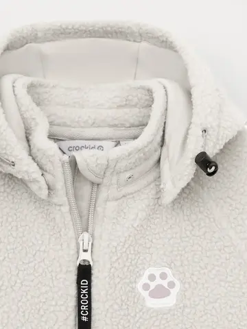 Флисовый комбинезон для девочки со съёмным капюшоном. Капюшон регулируется по ширине с помощью эластичной утяжки со стопперами. Подклад выполнен из гладкого трикотажа супрем, произведённого из высококачественного натурального хлопка. Застёгивается на удлинённую молнию с мягкой защитой шеи и подбородка. В размерах 62, 68 и 74 на рукавах и ножках есть отвороты. Украшен декоративными ушками и нашивкой. Комбинезон сохраняет цвет и форму после многократных стирок.