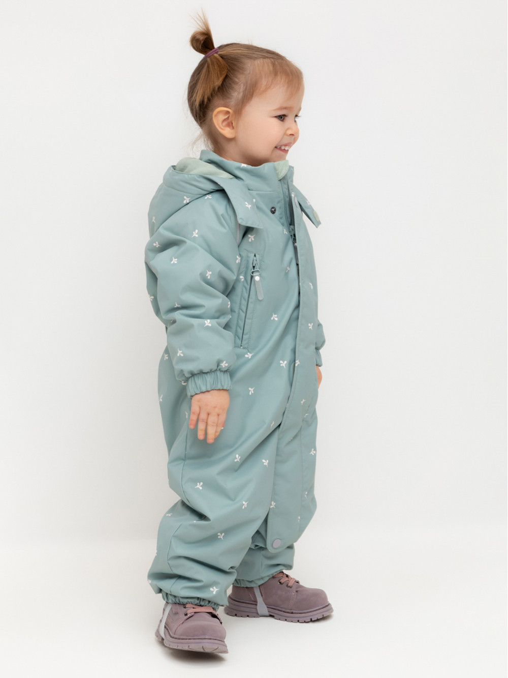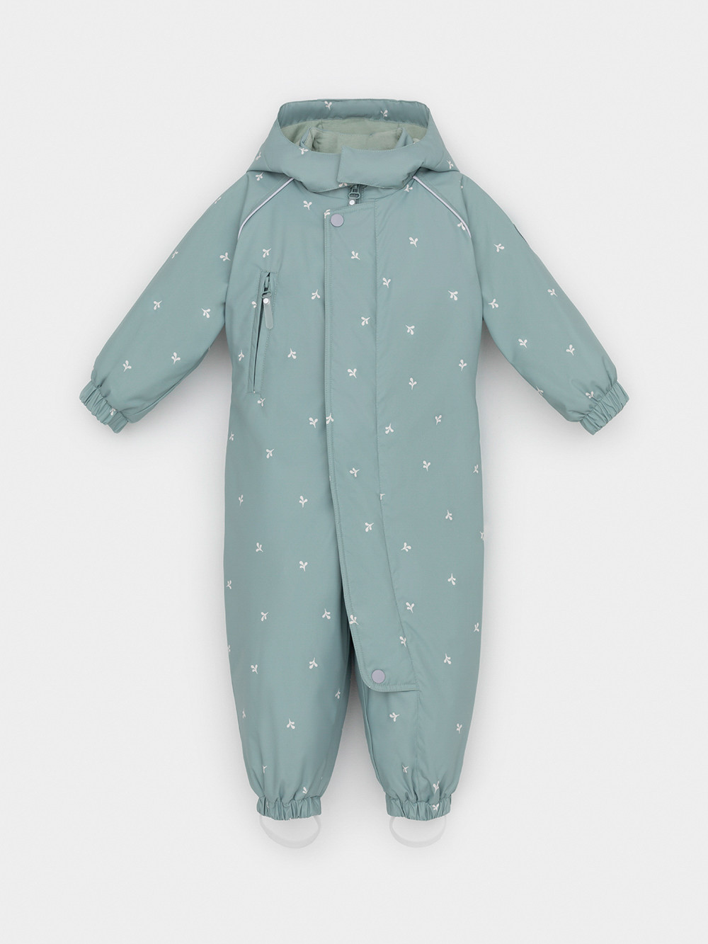 Демисезонный комбинезон ясельный с утеплителем SEE® 120 г/м2. Выполнен из мембранной ткани с дополнительной тефлоновой обработкой. Данный вид обработки предохраняет изделие от загрязнения и лучше отводит влагу. Подклад из 100% хлопка. Удлиненная молния для легкого одевания с защитой подбородка. Ветрозащитная планка фиксируется на липучках и кнопках. Утяжка на капюшоне с потайными стопперами. По низу рукавов и брючин, а также на спинке изделия предусмотрена эластичная резинка для лучшего прилегания. Для фиксации комбинезона используются съемные силиконовые штрипки. В размере 74-80 функциональные отвороты на рукавах и брючинах. Во всех изделиях верхнего ассортимента для безопасности ребенка предусмотрены светоотражающие элементы.