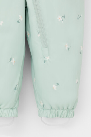 Ветровочный комбинезон ясельный из мембранной ткани с дополнительной тефлоновой обработкой. Данный вид обработки предохраняет изделие от загрязнения и лучше отводит влагу. Подклад из 100% хлопка. У изделия удлиненная молния для легкого одевания с защитой подбородка. Утяжка на капюшоне с потайными стопперами. По низу рукавов и брючин, а также на спинке изделия эластичная резинка для лучшего прилегания. Для фиксации комбинезона используются съемные силиконовые штрипки. В размерах 68-74, 74-80 функциональные отвороты на рукавах и брючинах. Во всех изделиях верхнего ассортимента для безопасности ребенка предусмотрены светоотражающие элементы.