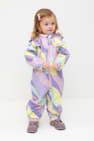 Ветровочный комбинезон ясельный из мембранной ткани с дополнительной тефлоновой обработкой. Данный вид обработки предохраняет изделие от загрязнения и лучше отводит влагу. Подклад из 100% хлопка. У изделия удлиненная молния для легкого одевания с защитой подбородка. Утяжка на капюшоне с потайными стопперами. По низу рукавов и брючин, а также на спинке изделия эластичная резинка для лучшего прилегания. Для фиксации комбинезона используются съемные силиконовые штрипки. В размерах 68-80 функциональные отвороты на рукавах и брючинах. Во всех изделиях верхнего ассортимента для безопасности ребенка предусмотрены светоотражающие элементы.