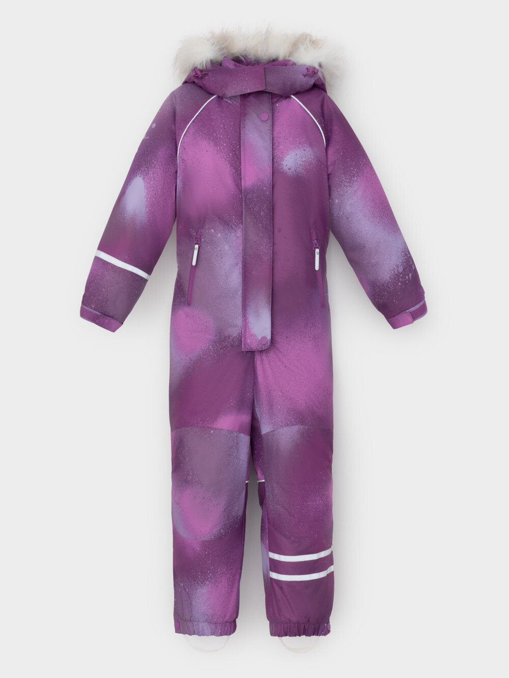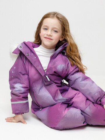Зимний комбинезон для девочки с утеплителем Fellex®: 250 г/м2 . Выполнен из мембранной ткани с дополнительной тефлоновой обработкой, которая предохраняет изделие от загрязнений и отталкивает влагу. Подклад выполнен из 100% полиэстера Tricot. Комбинезон застёгивается на молнию и внешнюю планку на липучках и кнопках, предусмотрена защита подбородка. Съёмный капюшон имеет эластичную утяжку со стопперами и отстёгивающийся искусственный мех. Резинка по спинке обеспечивает лучшее прилегание. По бокам два кармана на молнии. Эластичные манжеты на рукавах регулируются по ширине с помощью липучки, по низу изделия - с помощью кнопки. Внутренняя противоснежная юбка защищает обувь от попадания снега и удерживает комбинезон в закреплённом положении, предусмотрены отстёгивающиеся штрипки. Во всех изделиях верхнего ассортимента для безопасности ребёнка предусмотрены светоотражающие элементы.