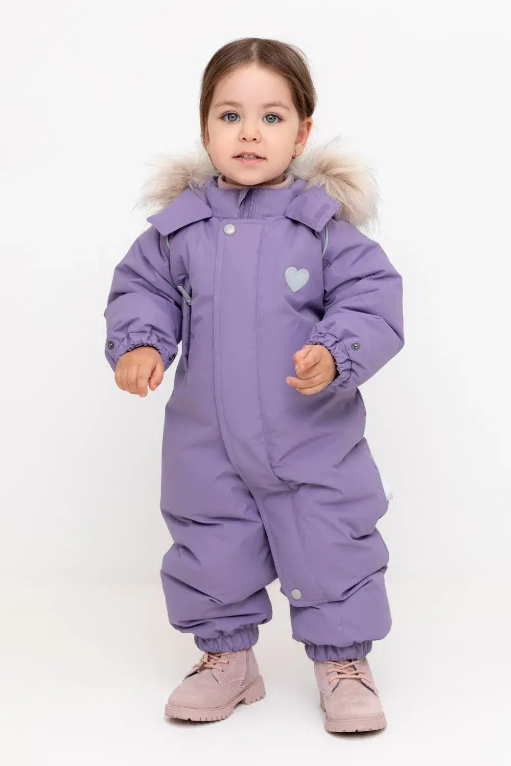 Комбинезон с натуральным утеплителем из гипоаллергенного гусиного пуха (70%) и пера (30%). • Мембранная ткань 1000/1000 покрыта тефлоновой пропиткой, отталкивающей воду и грязь, обладает "дышащими" свойствами и гарантирует идеальный воздухообмен. • Двойной пух-пакет удерживает утеплитель без повреждения ткани. Для утеплителя используется очищенный гусиный пух российского производства. • Несъемный капюшон • Капюшон со съемным искусственным мехом и стяжкой со стопперами • Защита подбородка • Мягкий трикотажный подклад из 100% хлопка • Ветрозащитная планка • Удлиненная молния для легкого одевания • Силиконовые отстегивающиеся штрипки. • Эластичные манжеты. • 1 карман на молнии • Светоотражающие элементы • Внутренняя размерная этикетка с местом для имени • Дополнительные пристегивающиеся утепленные варежки и пинетки в размерах 68-74, 74-80, 80-86.